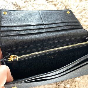 Prada Black Leather Long Wallet (Authentic, Calfskin)