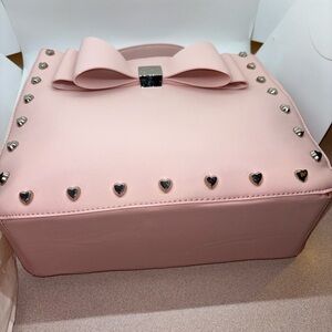 Chic and stylish pink handbag with a charming bow accent. Perfect for adding a touch of elegance to any outfit.