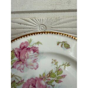 Antique 1920s Haviland France Limoges Pink Cabbage Rose Gold Trim Plate