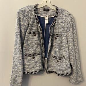 Lane Bryant Women's Plus Size 24 Silver Black Faux Tweed Open Front Crop Blazer