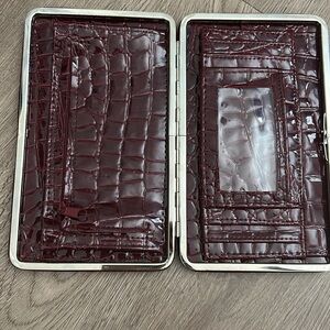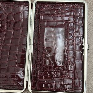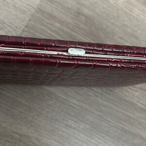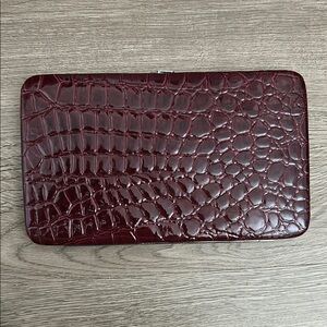 Elegant faux crocodile embossed click wallet / clutch in a rich burgundy color. Perfect for evening outings.