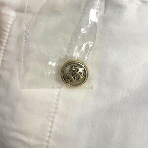 These PETIT CLAIR Boys Pants (PCB-PNT1-WHT-SS22) in size 10 are the perfect addition to your young one's wardrobe. These pants feature a sleek, crisp white design with standout gold buttons WITH anchor detail, adding a touch of nautical charm to the classic look for both casual and semi-formal occasions. Made with comfort and durability in mind, these pants are perfect for everyday wear, offering both versatility and style.
