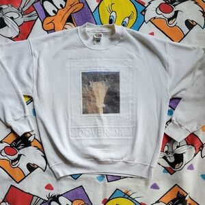 90s vtg Looney Tunes crop top shirt. one size fits all, big screen printed tweedy on front working out. 1997 print.