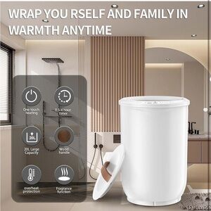 Large Towel Warmer for Bathroom - Heated Towel Warmers Bucket, Wood Handle, Auto Shut Off, Fits Up to Two 40"X70" Oversized Towels.