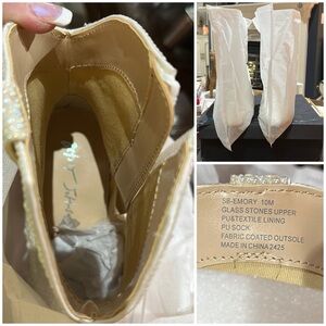 Betsey Johnson Emory Pearl Western Boot in Pearl Accent Finish, Size 10. Brand new in box and unworn they are still wrapped and boxed with replacement stones included. Purchased at DSW Fair Lakes store in all available colors in my size!