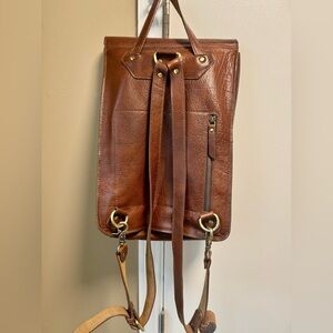 This brown leather laptop bag features a rich, warm hue and a vintage-inspired design. Crafted from high-quality leather, it offers durability and a timeless appeal. The bag's rectangular shape and smooth finish make it a stylish choice for carrying your essentials. Minor flaw on front flap, see photos. Fits up to 15.6” Laptop.