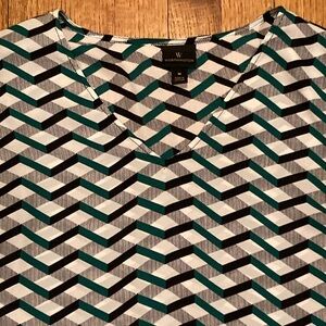 Worthington Green and Black Chevron Patterned Blouse Size Medium