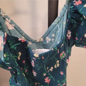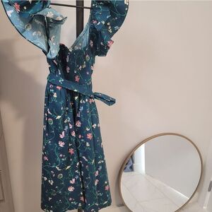 Designed with a smocked bodice for a flattering, flexible fit, this dress features delicate ruffled shoulder straps and a flowing A-line silhouette. The midi length adds versatility, making it easy to dress up or down.