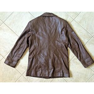 JONES NEW YORK Size Small Sz S Pebbled Leather BROWN Womens Jacket Coat