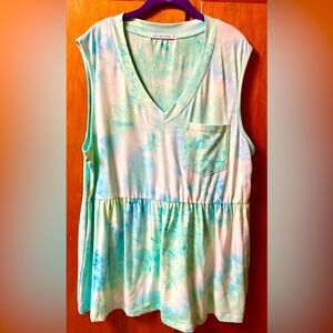 Mint Tie-Dye V-Neck Tank Top