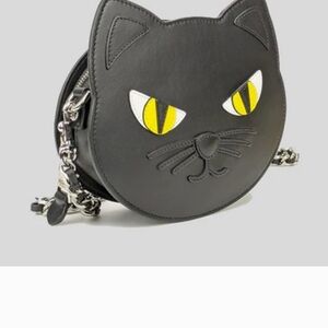 Jeremy Scott BLACK LEATHER CAT CROSSBODY BAG Moschino couture New /dust Bag