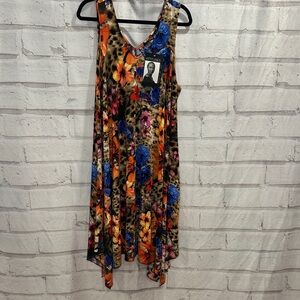 Full length, straight leg floral and grey jean. Has a good stretch and frayed hem.
