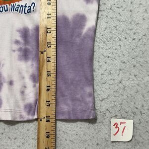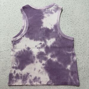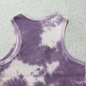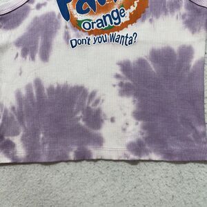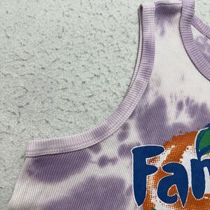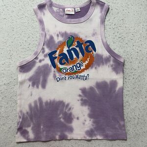 Great condition Coca-Cola Fanta Orange Soda sleeveless ribbed tank top in a women's slim fitting large in a purple tie dye pattern.