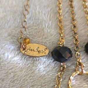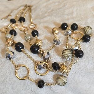 This stunning necklace features a blend of gold and black tone beads, perfect for adding a touch of elegance to any outfit. The intricate design showcases a sophisticated style.