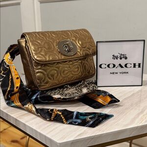 Coach Bag Cream Leather Wallet Gold Chain Crossbody