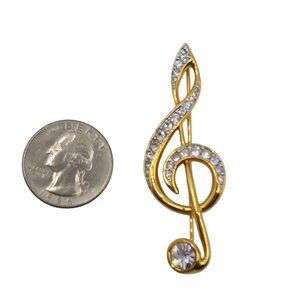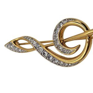 Signed Swarovski Swan Logo Gold Silver/Clear Crystal Musical Clef Note Brooch