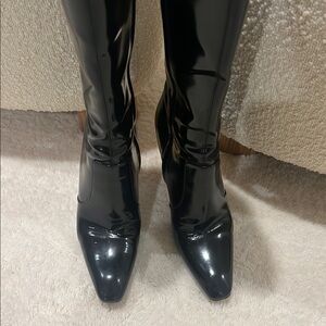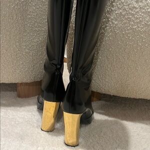 Knee high boots from Saint Laurent featuring a gold heel and zipper on the side. Super luxurious!