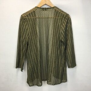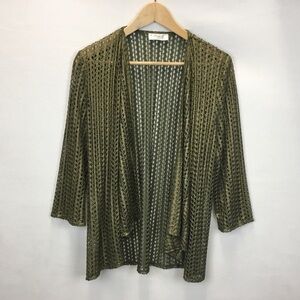 Aris. A Gold Olive Green Metallic Open Front Cardigan Mesh Fairy Grunge Party
