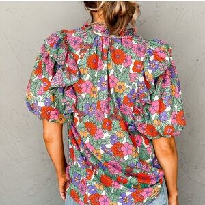 Brighten your wardrobe with this vibrant floral puff sleeve top. Perfect for any occasion, this colorful piece adds a touch of fun to your style.