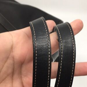 Measurements in photos. Straps are adjustable. This is a nice large tote, perfect for work or travel or for everyday, if you like to carry "everything but the kitchen sink" with you. Would also make a nice diaper bag. Top zip closure which works like a "coat/jacket zipper", which allows the bag to be opened wider.