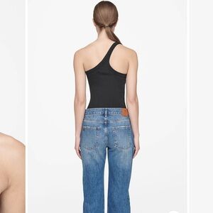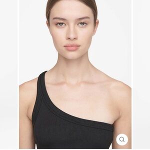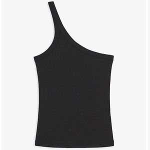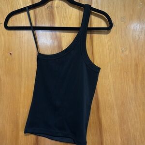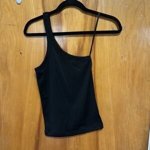 Elevate your style with this chic one-shoulder black top. Perfect for any occasion, this top offers a sleek and modern look. Brand new without the tags.