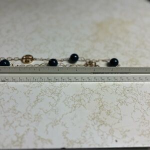 This elegant necklace features a stunning combination of gold and black beads, perfect for adding a touch of sophistication to any outfit.