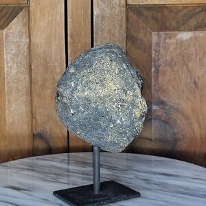 Beautiful agate geode slice with natural patterns. Displayed on a sturdy stand. Perfect for home decor. $75.