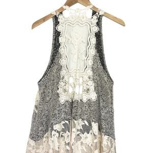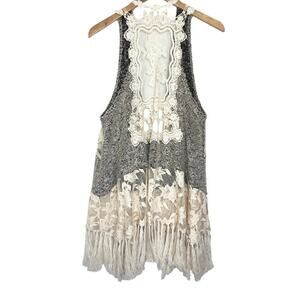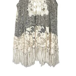 ANTHROPOLOGIE RYE Women’s Mixed Media Boho Fringed Lace Sweater Vest