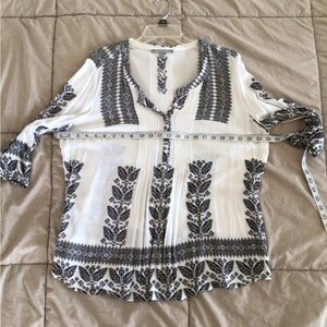 Elegant women's top featuring a striking black and white pattern. Perfect for any occasion., size 1X