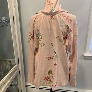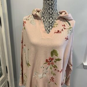 Chaps peach lightweight top featuring a floral pattern and hood. Perfect for everyday comfort.