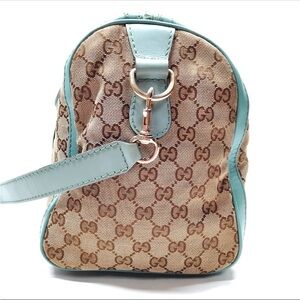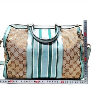 Gucci Vintage Blue & Green Web Boston Bag GG Canvas Medium Duffle Doctor W/Strap