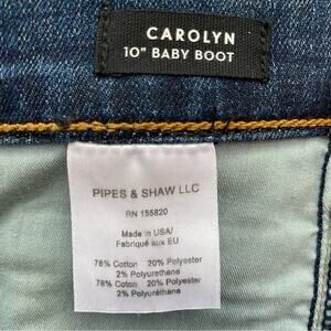 The Carolyn features a 10'' high-rise with a pinched knee and a cropped, tomgirl silhouette. A red & navy tuxedo stripe waistband and exposed button fly set the Carolyn apart from everything else in your closet. Thanks to our Secret Skinny Pockets, this is the best you've ever looked in jeans. The pocket construction utilizes stretch fabric for a slimming effect that will ensure a perfect fit.