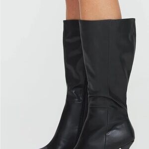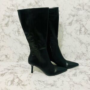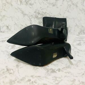 Faux leather material, zip fastening at inside, pointed toe, stiletto heel