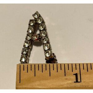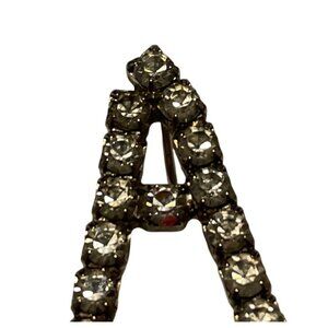 Vintage 1970’s Silver Tone Sparkle Rhinestone Brooch Pin Initial A