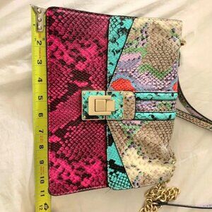ALDO Gorgeous Bright Multi-Color/Gold Snakeskin Embossed Crossbody Bag EXC