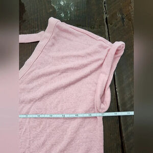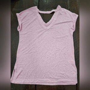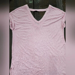 Baby pink super soft light weight see thru vneck shirt with strap and vneck in the back in size XS by Loft. Sleeves are rolled for style of shirt. Smoke free home. Perfect to put over a tank or bikini top. 24 1/2 inches length and 17 inches armpit to armpit.