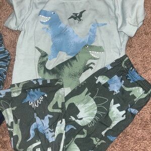 Adorable pajama sets featuring dinosaur and camo designs. Includes a navy and camo 3t old navy pajama set, striped shorts, a dinosaur print shirt, and matching pants 3t.