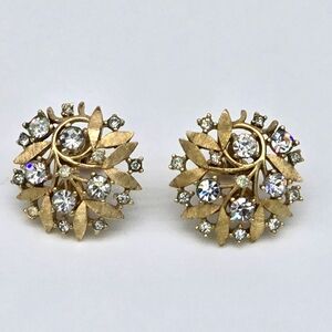 Crown TRIFARI Brushed Gold Tone Leaf Entwined w Rhinestones 1950s