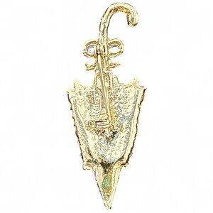Vintage Gold-Tone Umbrella Brooch With Faux Pearls & Blue Bow