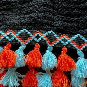 Adora Crocheted Black Tank Top with Pom Pom Fringes Size
