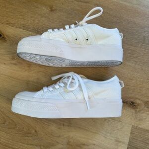 Stylish white platform sneakers by Adidas. Perfect for casual wear.
