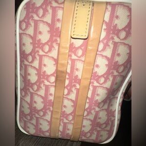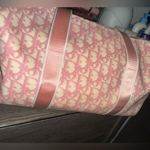 Christian Dior Boston Trotter Handbag Pink NO2 Y2K Vintage. Material is coated canvas PVC leather. Authentic. Rare. Some signs of use: bag straps can use a little cleaning, inside of bag near the zipper area on both sides can also use cleaning, otherwise the rest of inside is pretty clean The lines on side have a stain and a few small cracks. For the most part bag is in great condition. Please see photos and video for reference of some other minor callouts.