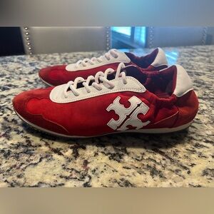 Beautiful and bold leather/suede trainers with vintage double T logo. Only worn a few times. Run small - tagged 9.5 but fit more like a 9. Some transfer from shoes onto laces and minor wear as shown in pictures.