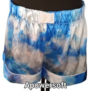 Victoria's Secret rainbow sky print, satin pajama set. Cloud print with rainbow colored accents, v logo at front of elastic waisted boxer, pipe trim at legs and side of Cami. Good preloved condition