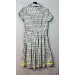 LemLem 100% Cotton Dress. New With Tags. Size Small. Grey and White Pattern with Neon Yellow accent. Fit and Flare button down style.