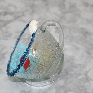 Preloved glass punch or tea cup turned into the perfect holder for a cute vignette scene