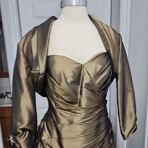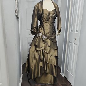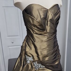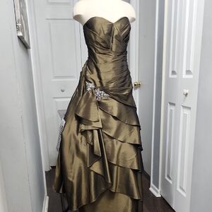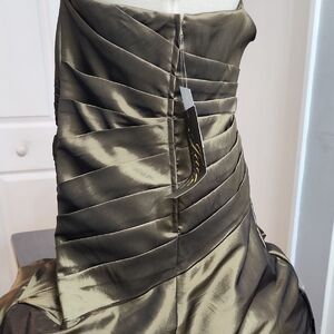 Elegant Strapless Olive Green Evening Gown New With Tags Size 14