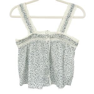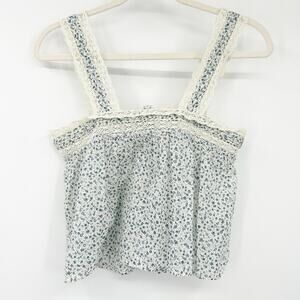 Doen Womens Cottagecore Prairie Sonora Organic Cotton Lace Ditsy Floral Tank Top in Blue and White. Size extra small.