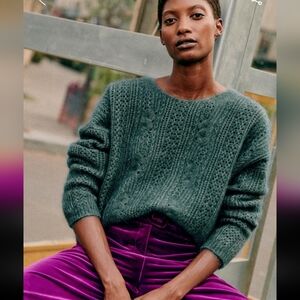 Sezane Susanna Kid Mohair/ Wool Green White Knit Cardigan