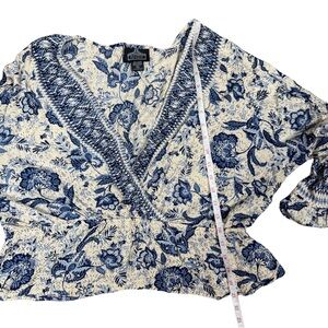 Super cute boho top by Angie in a size 2x. Very flowy. Very feminine and floral. The blouse is missing the belt that goes around the waist, but no other known flaws or call outs. You’ll definitely need to wear a cami underneath this top. Material is 100% rayon. Please review measurements in photos and below to ensure proper fit.